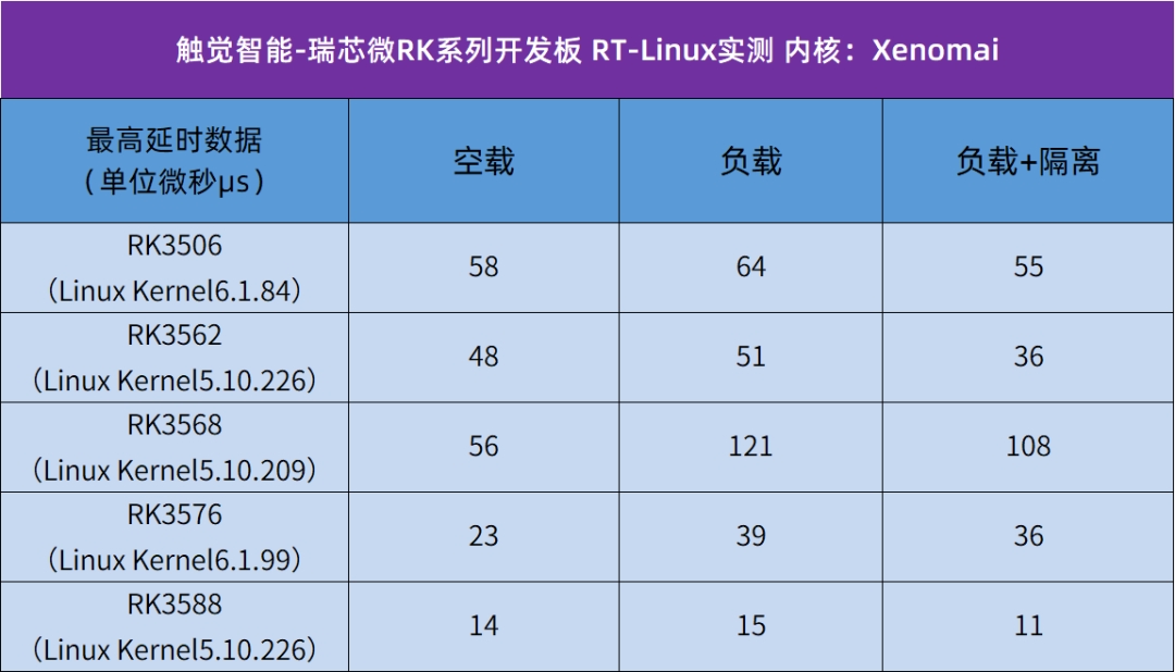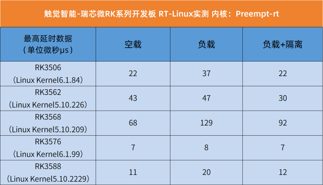 测试主板:触觉智能旗下瑞芯微RK35XX系列开发板,包括RK3506、RK3562、RK3568、RK3576、RK3588。