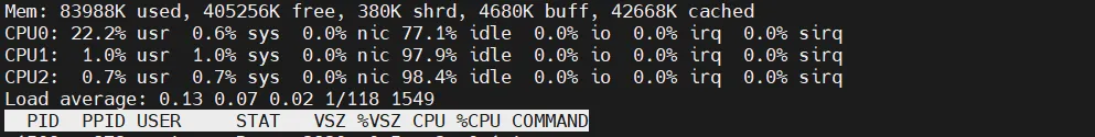 ./test.sh& #输入top命令按1键查看CPU使用率 top 1