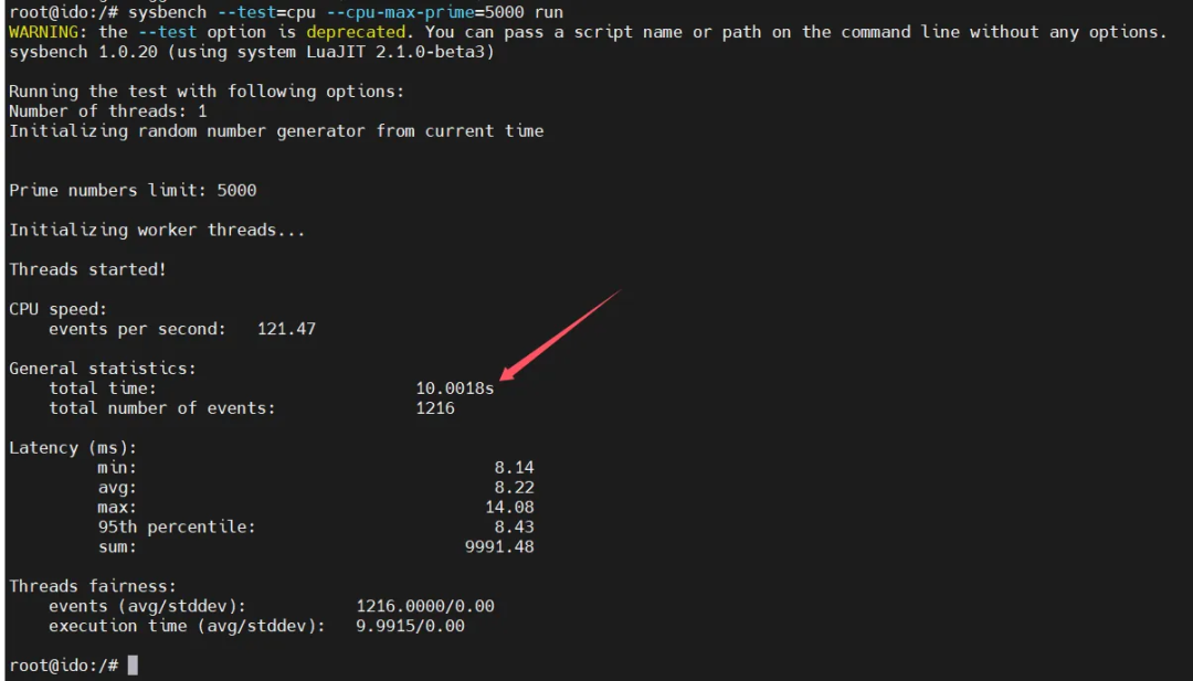 sudo apt-get update sudo apt-get install sysbenchsysbench --test=cpu --cpu-max-prime=5000 run