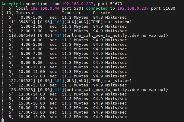 iperf3 -c 192.168.0.44 -i 1 -t43200