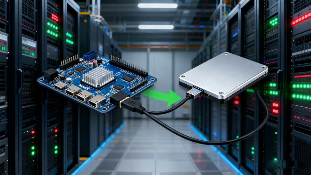 开启后,可以在PC上看到一个新的U盘盘符,表示挂载⼤容量外挂存储成功: