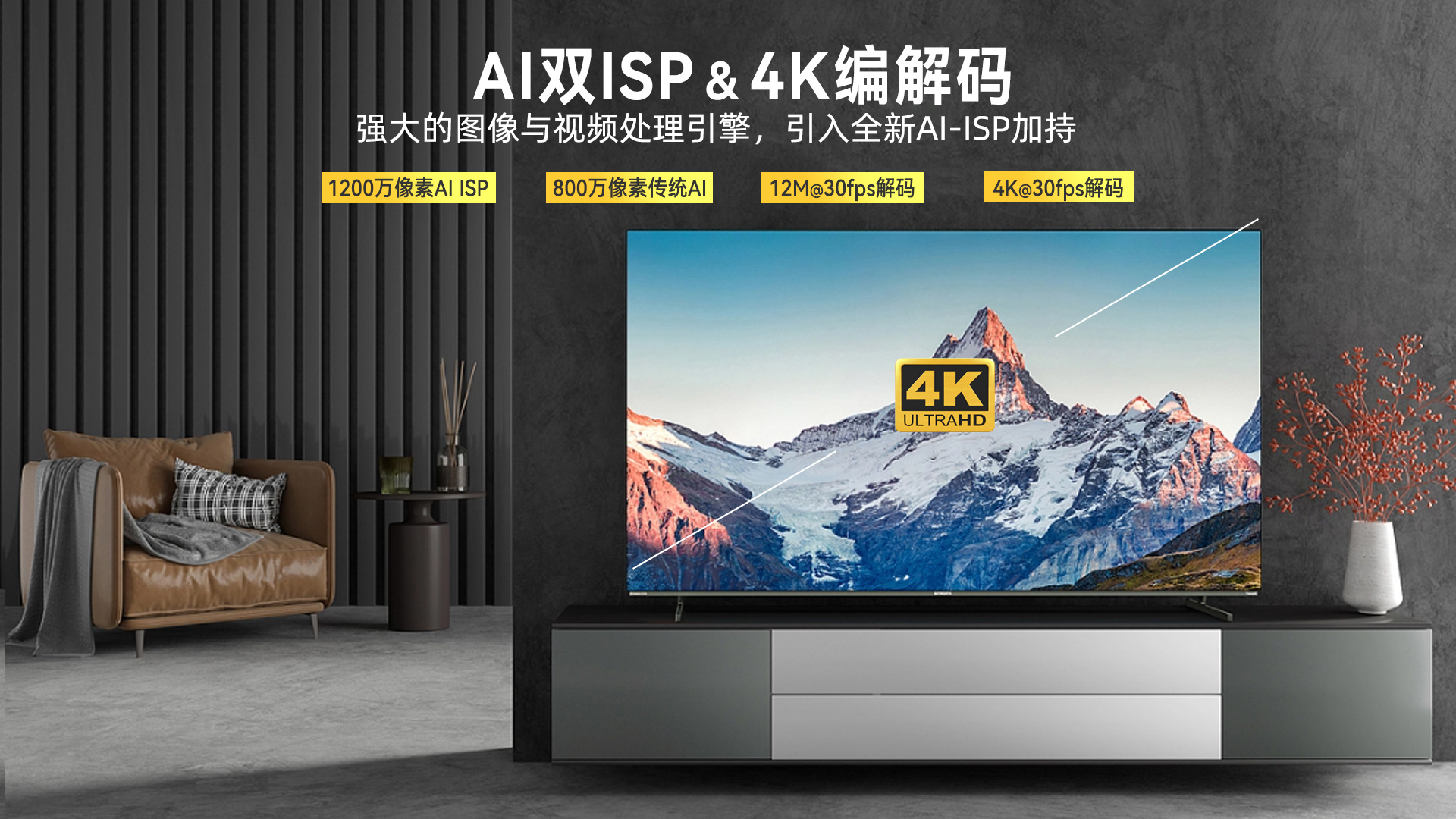 ISP | 1200万像素ISP + 800万像素的AI-ISP 集成多种算法加速器: HDR、3A、LSC、3DNR、2DNR、锐化、去雾、鱼眼校正、伽马校正、特征点检测等 |