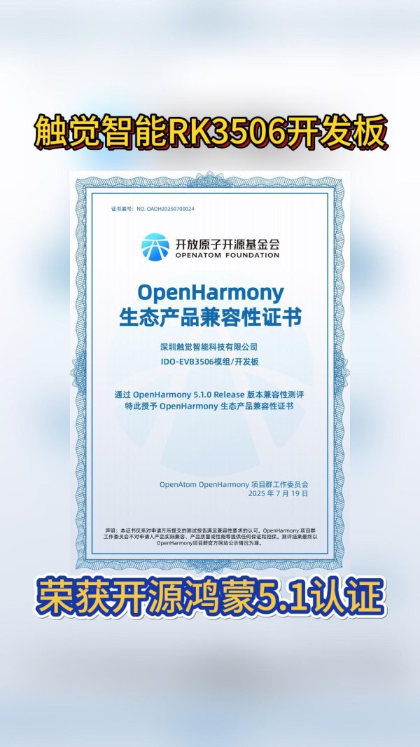 已成功适配OpenHarmony5.1 Release L1小型系统,同时支持华为星闪无线通信技术,实现了从软件到硬件百分百全国产!#开源鸿蒙#OpenHarmony#星闪技术#RK3506#RK3506J#开发板#国产芯片#触觉智能